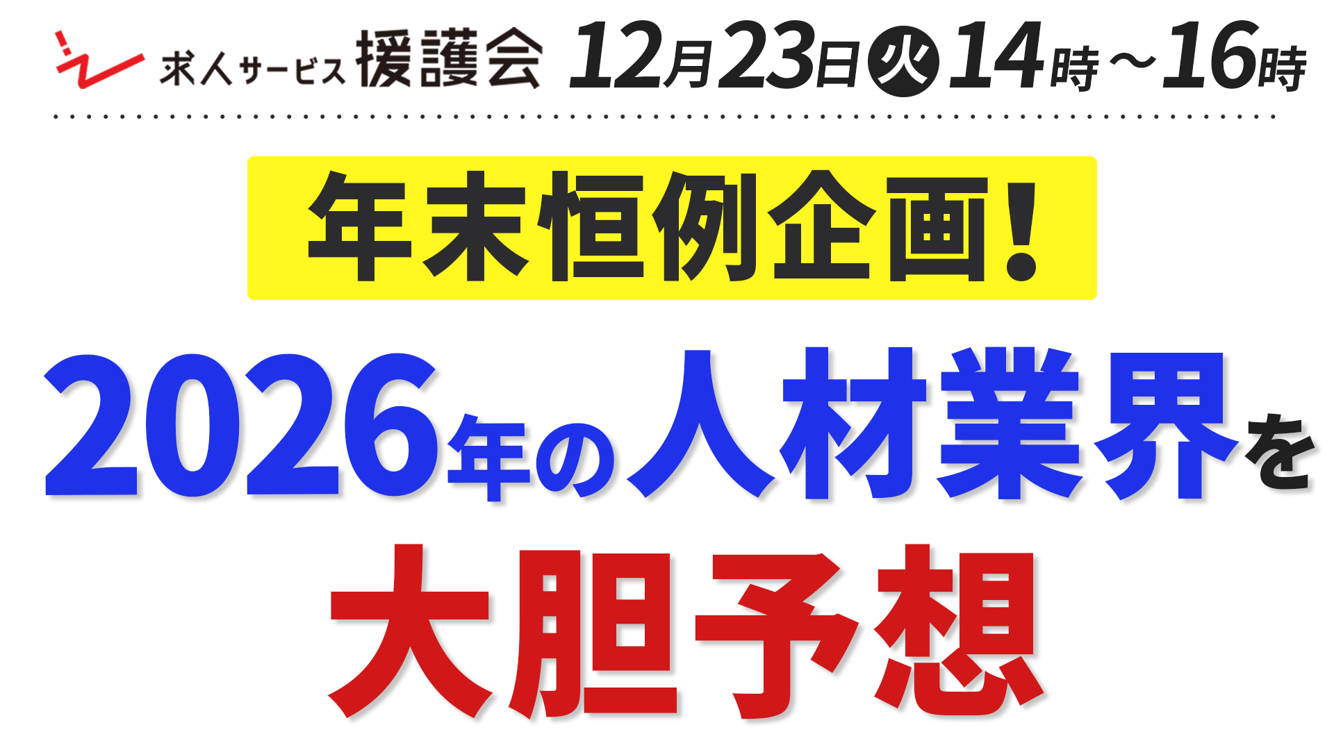 今年最後の勉強会では、年末恒例の企画として、 2026年以降に起こる人材業界の変化について、下記のテーマで予測していきます。